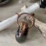 Gray Druzy Moon with Raw Round Tourmaline and Bone Accent in Copper