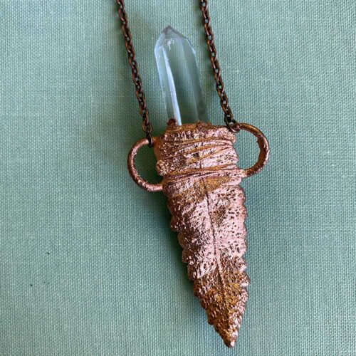 Electroforming is a chemical process that deposits a thick, structural layer of copper onto conductive objects. Each piece was handmade by me in my Florida studio and is completely unique. My work features natural materials with inherent flaws and imperfections. Each piece is highly textured and unsealed. Unsealed copper will naturally patina, and could cause discoloration (oxidation) on the skin when worn.